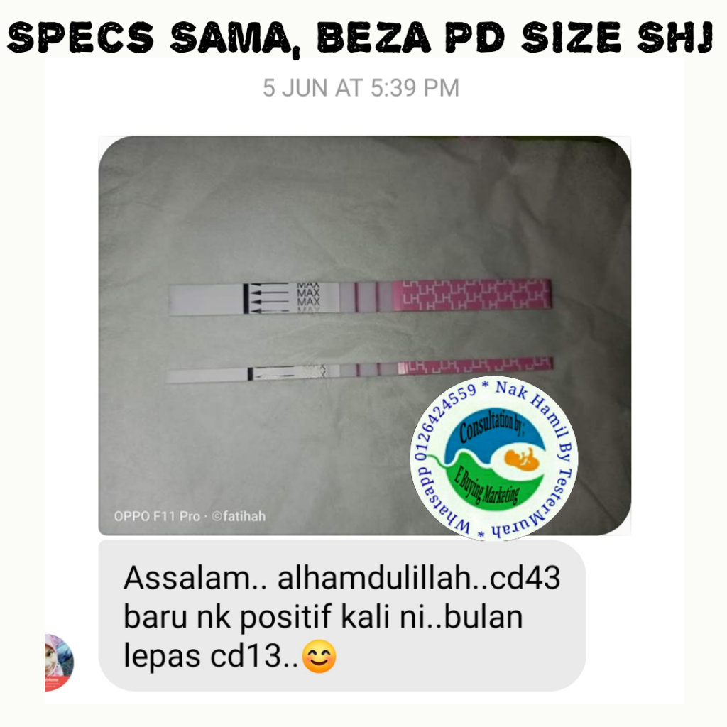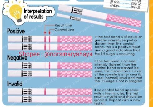 Jika jalur ujian adalah sama warna atau lebih gelap drpd jalur kawalan, ini adalah keputusan yang positif dan petunjuk yang baik bahawa LH surge sdg berlaku.