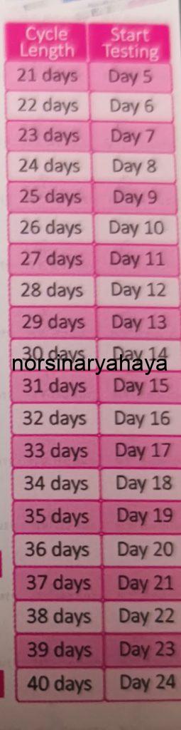 ➡️ Mula lebih awal, hari ke-7 atau ke-8 atau sebaik haid bersih dan mandi wajib. Jika lari terlalu jauh contoh rekod 6 kitaran lepas 26 hingga 48 hari, guna kitaran paling pendek sebagai penentuan mula ujian OPK.